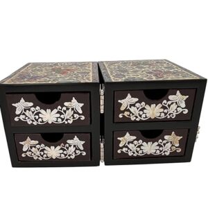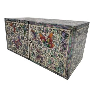 Elevate your living space with this exquisite decorative chest, a true masterpiece of artistry and craftsmanship. Meticulously handcrafted, this stunning piece features intricate floral motifs and intricate patterns adorning its exterior, showcasing the exceptional skill of the artisans who created it. The vibrant colors and delicate details come together in a harmonious blend, capturing the essence of timeless elegance. With ample storage space and beautifully carved doors, this chest offers both functionality and visual appeal. Whether used as a statement piece in your living room or a cherished addition to your bedroom, this decorative chest will undoubtedly become the centerpiece of your decor, captivating the eyes of all who behold its magnificence. Embrace the beauty of traditional artistry and elevate your surroundings with this remarkable treasure.