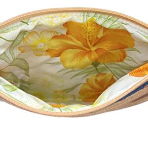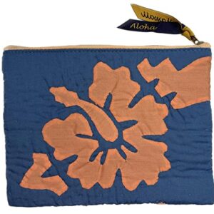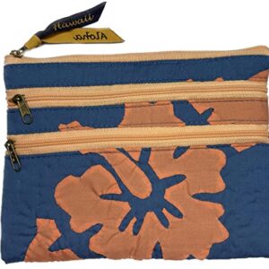 Beyond Joy Hawaiian Hand Sewn Quilt 3 zipper Hibiscus Cosmetic Pouch bag Machine Finished 7.5" x 5.5" Multi-Colors: Blue