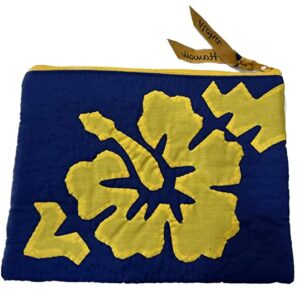 Beyond Joy Hawaiian Hand Sewn Quilt 3 zipper Hibiscus Cosmetic Pouch bag Machine Finished 7.5″ x 5.5″ Multi-Colors: Indigo