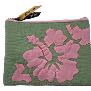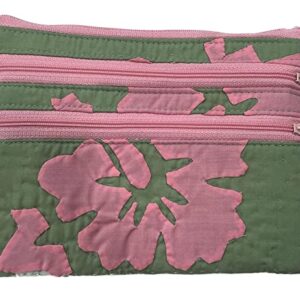 Beyond Joy Hawaiian Hand Sewn Quilt 3 zipper Hibiscus Cosmetic Pouch bag Machine Finished 7.5" x 5.5" Multi-Colors: Teal