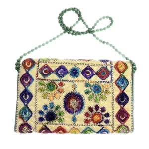 Beyond Joy Hippie YaYo Clutch/Crossbody Bag, Handmade Multi-color Boho & Hippie Style w Embroidery on Unique Tribal Fabric (Beige)