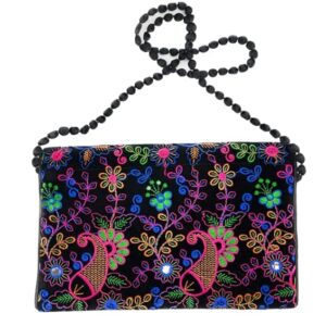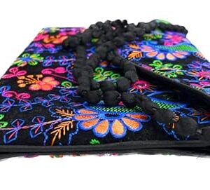 Beyond Joy Hippie YaYo Clutch/Crossbody Bag, Handmade Multi-color Boho & Hippie Style w Embroidery on Unique Tribal Fabric (Black)