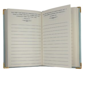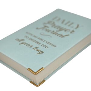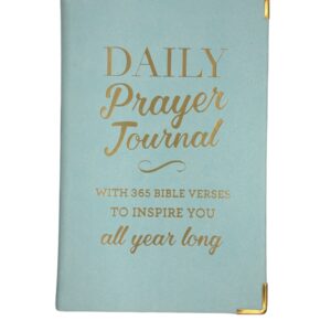 New – Daily Prayer Journal: 365 Bible Verses. A Journal to Inspire You Each & Every Day. 3.5″ X 5.5″ X .75″. Dark Navy Faux Leather with Gold lettering and metal corner protectors, Lined Pages and, Ribbon Marker. Great for Personal Devotion or to Present as a Gift.