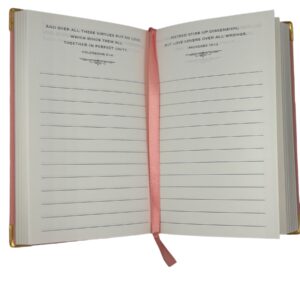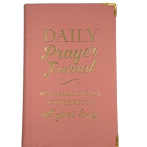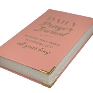 New – Daily Prayer Journal: 365 Bible Verses. A Journal to Inspire You Each & Every Day. 3.5″ X 5.5″ X .75″. Dark Navy Faux Leather with Gold lettering and metal corner protectors, Lined Pages and, Ribbon Marker. Great for Personal Devotion or to Present as a Gift.