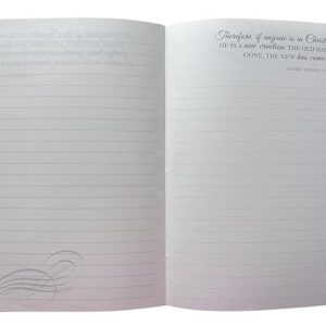 Blank notebook with Bible verses on every other pages. Faux leather material and hardcover with bible verse from Deuteronomy 31:8