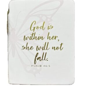 Eccolo Pocket Pen Journal God is Within Her, She Will Not Fall. Psalm 46:5", 192 Lined Page Super Flexible Notebook, 5.75 x 4.5, Pen Included, Gray with Gold Pen