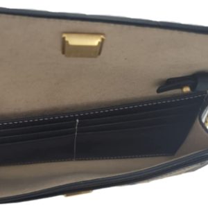 Simple lines. Hand-sewn pick stitching. Our Double T in gold brass rolled. The Juliette French linen is made of Italian linen twill, printed with multi-directional stripes. It’s detailed with leather edges. Perfect for busy days and weekend getaways as of cultch, wallet, or crossbody bag.