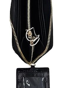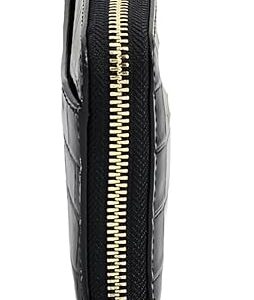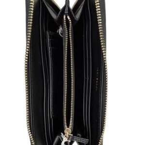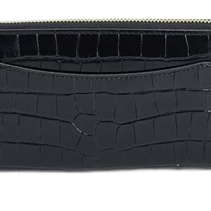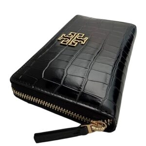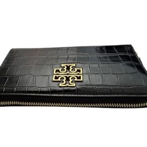 Tory Burch Women’s Britten Embossed Zip Continental Wallet With Gold Hardware (Black) Interior Detail: One Center Zip Pocket, eight Credit Card Slots, Two Slip Pockets, and Detachable Card Case Exterior Details: Tory Burch Logo in the front and Full-Length Back Slip Pocket Approximate Measures: 7.5″ L x 4.25″ H x 1″ W, No Dust Bag