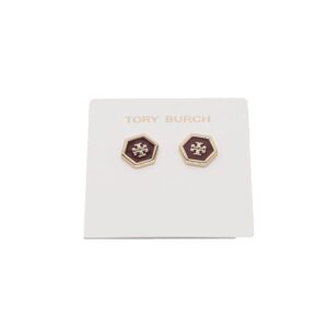 Tory Burch 82437 Claret With Tory Gold Women’s Hex Logo Enamel Earrings. Dust bag included. Tory Burch’s style has been described as preppy-boho and preppy-bohemian luxe, easy to wear and versatile and its styles are popular with women of all ages. A deeply American brand, but open to the world, it features colorful prints and precious details, derived from the passion for travels and discovery.