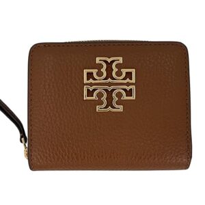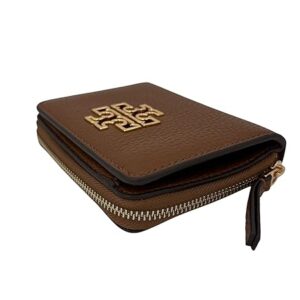 Tory Burch Britten BI Fold Wallet 146708 Moose Brown with Brass Rolled in Gold Tone Hardware