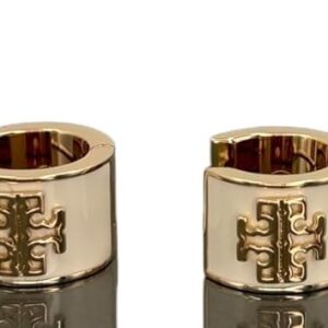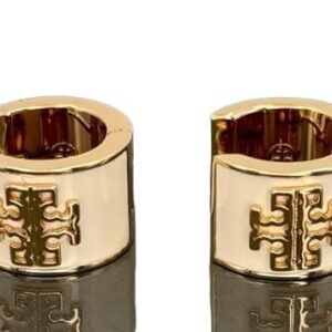 Elegant brass tone to match any outfit with luxury Tory small and wide hoop earrings. About half inches drop/diameter.
