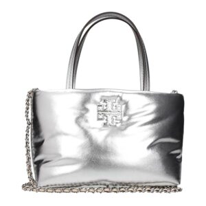 Tory Burch Britten Nylon Puffy Mini Tote (Metallic Silver)