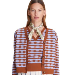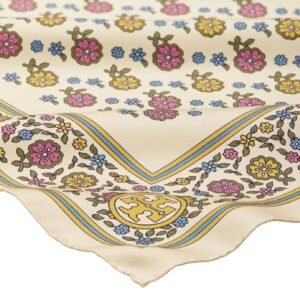 The graphic floral on our new silk twill scarf is inspired by vintage table linens. Wear it loosely tied around the neck, as a wrist tie or headband, or add it to a handbag.
