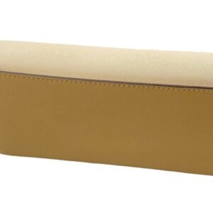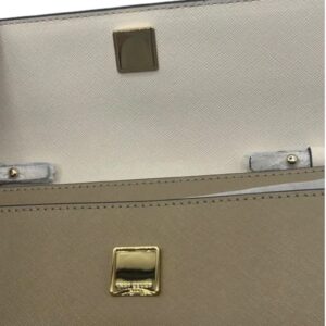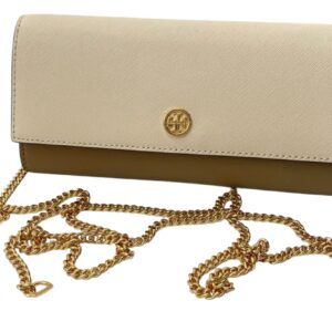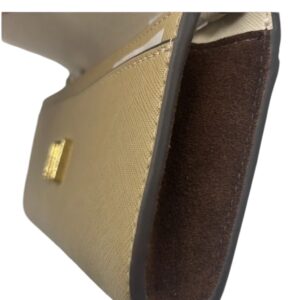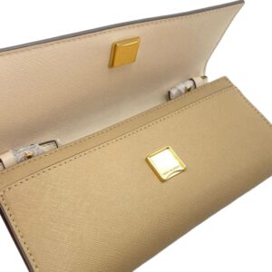 Elegant and durable Saffiano lether on exterior and soft leather interior with gold tone hardware and chain.