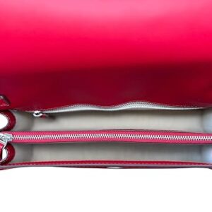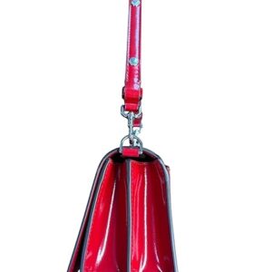 Make a bold statement with this stunning Tory Burch Emerson Patent Leather Convertible Crossbody bag in warm, shiny red. This sleek and sophisticated accessory features a glossy patent leather exterior that catches the light beautifully, complemented by polished silver-tone hardware and the iconic Tory Burch logo emblem. The bag’s convertible design offers versatile carrying options, while its streamlined silhouette maintains a modern, minimalist appeal. Perfect for both day and evening wear, this crossbody bag adds a vibrant pop of color to any outfit. The practical size makes it ideal for carrying your essentials, and the durable patent leather construction ensures lasting beauty. The adjustable strap allows for comfortable wear, whether styled as a shoulder bag or crossbody. Its timeless design and premium craftsmanship make it a worthy addition to any fashion-forward wardrobe.