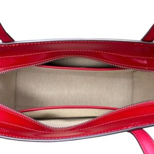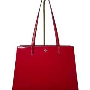 Make a sophisticated statement with the Tory Burch Emerson Patent Work Tote in warm red. This sleek and stylish tote combines functionality with fashion, featuring a glossy patent finish that adds a luxurious touch to your everyday ensemble. Perfect for the modern professional, this spacious work tote offers ample room for your daily essentials, from laptops and documents to personal items. The rich warm red hue adds a bold pop of color while maintaining its versatility for both office wear and casual outings. The Emerson collection from Tory Burch is known for its practical elegance, and this patent work tote continues that tradition with its refined silhouette and contemporary design. Whether you’re heading to the office, attending meetings, or enjoying a weekend shopping trip, this tote seamlessly transitions from day to night while keeping your essentials organized in style.