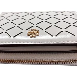 Tory Burch Emerson Perforated Mini Wallet, Optic White, Leather Zip Around