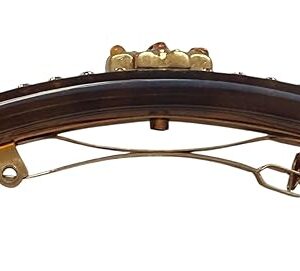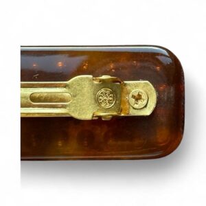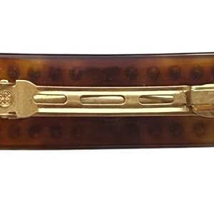 Add a touch of sophisticated glamour to your hair with this Tory Burch Roxanne small barrette. The luxurious hair clip features a rich brown base adorned with sparkling crystal embellishments arranged in an elegant border pattern. The centerpiece showcases a charming yellow and green floral design, bringing a delightful pop of color to this refined accessory. Perfect for both everyday wear and special occasions, this versatile barrette securely holds your hair while making a stylish statement. The thoughtfully crafted design combines classic elegance with modern flair, making it an ideal choice for elevating any hairstyle. The compact size ensures comfortable wear while the premium construction promises lasting beauty. Whether paired with casual attire or formal wear, this crystal-embellished hair clip adds that perfect finishing touch to your ensemble.