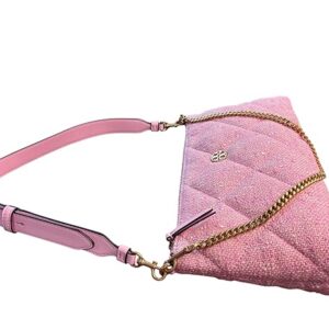 A soft relaxed shoulder bag is made from elegant tweed fabric and leather. Features a removable chain shoulder strap, a adjustable and removable leather strap