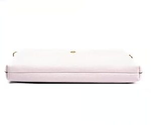 Soft Pebbled leather Gold tone hardware Beige fabric lining Adjustable – removable fabric strap for versatile styling Interior: 1 slip pocket, 1 zip pocket 1 snap pocket at the pack Approx. dimensions:10.2 inches Width; 7.2 inches Height; 1.1 inches Depth