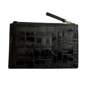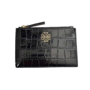 Tory Burch Women’s Britten Embossed Zip Card Case Wallet (Black) Features: One Slip Pocket, 5 Credit Card Slots, and One Zip Pocket Approximate Measures: 5.5″ L x 3.5″ H x .25″ W