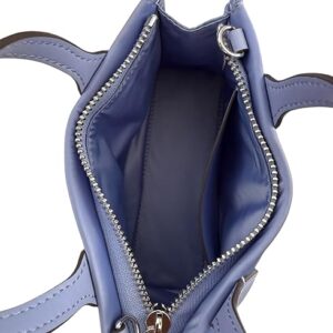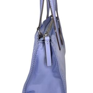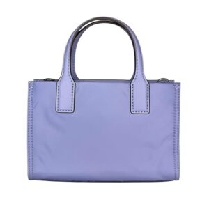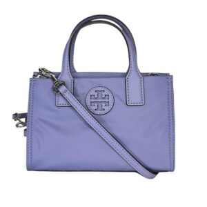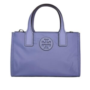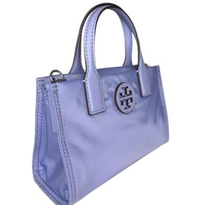 Tory Burch Women’s Ella Nylon Shine Mini Tote (Pale Iris) Interior Feature: Tory Burch Nylon Lining and One Slip Pocket Adjustable Crossbody Strap Drop Approximately 23″ | Double Handle Drop 3 ” Approximate Measurements 7” L x 4.5” H x 2” D