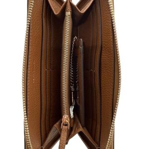 Tory Burch Britten Zip Continental Wallet with Card Case, Gold Tone Hardware Interior Detail: One Center Zip Pocket, eight Credit Card Slots, and Detachable Card Case Full Length Exterior Slip Pocket Approximate Measures: 7.5″ L x 4.25″ H x 1″ W