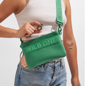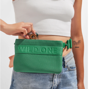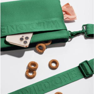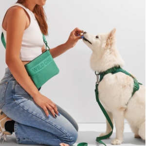 Wild One’s first wearable for humans, complete with spacious compartments for your personal belongings and their on-the-go treats. Featuring a 100% recycled knit body (made from 10 water bottles), a built-in Poop Bag dispenser, and adjustable carrying straps so it can be worn as a fannypack or crossbody bag depending on your walk style.
